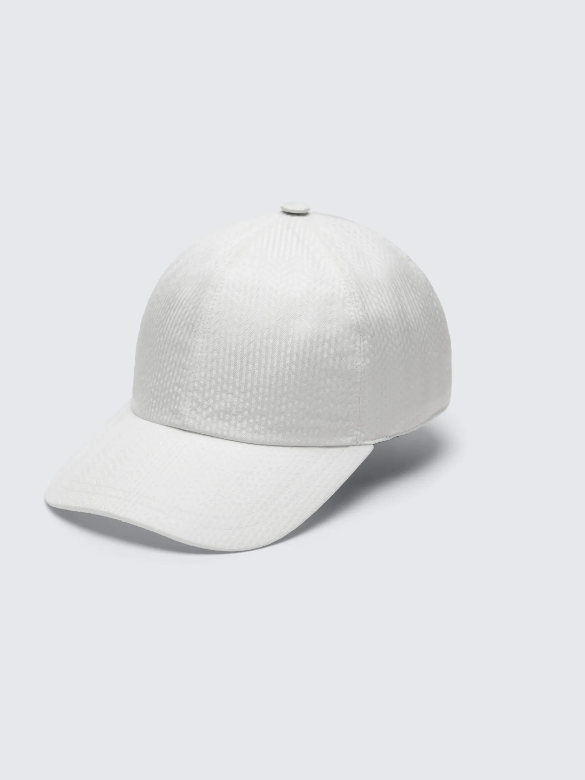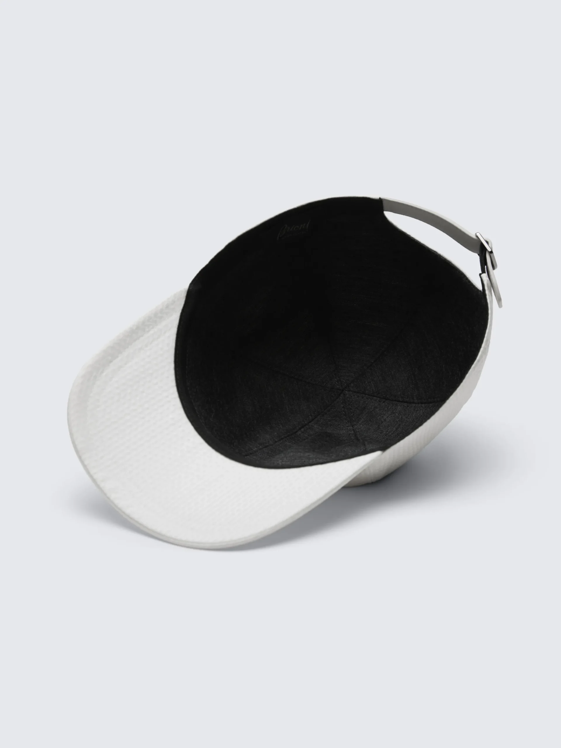 White silk seersucker baseball hat. Featuring an adjustable nappa leather back band with metal buckle and embossed Brioni logo to attain the desired fit. Lined in lightweight cotton jersey for extra comfort, this is the perfect piece to pair with a classic T-shirt and a pair of jeans for a sporty-chic look.nThis item is part of our Riviera collection, a celebration of self-reconnection and unhurried rhythm, inspired by the endless blue hues of the Mediterranean Sea.