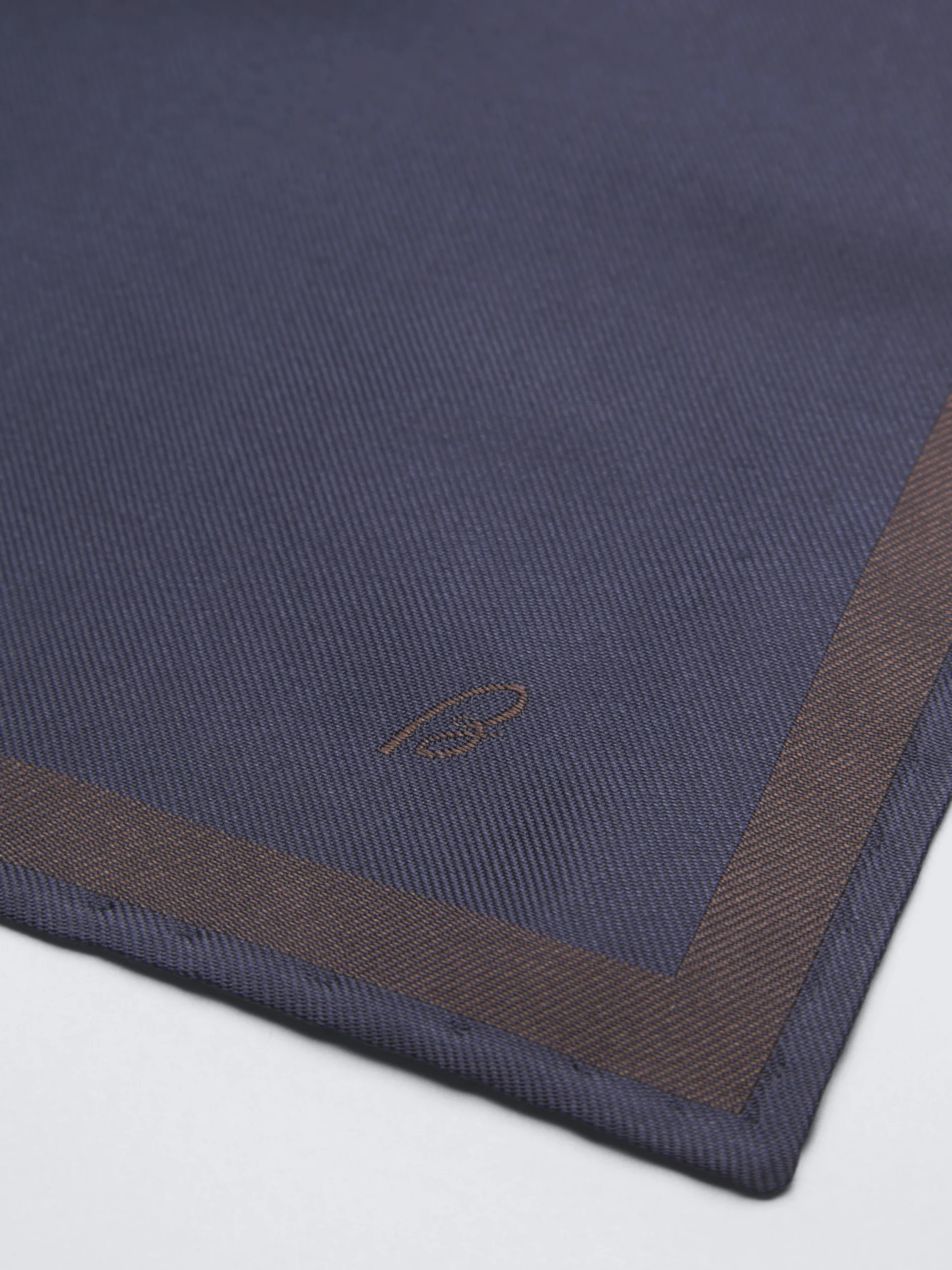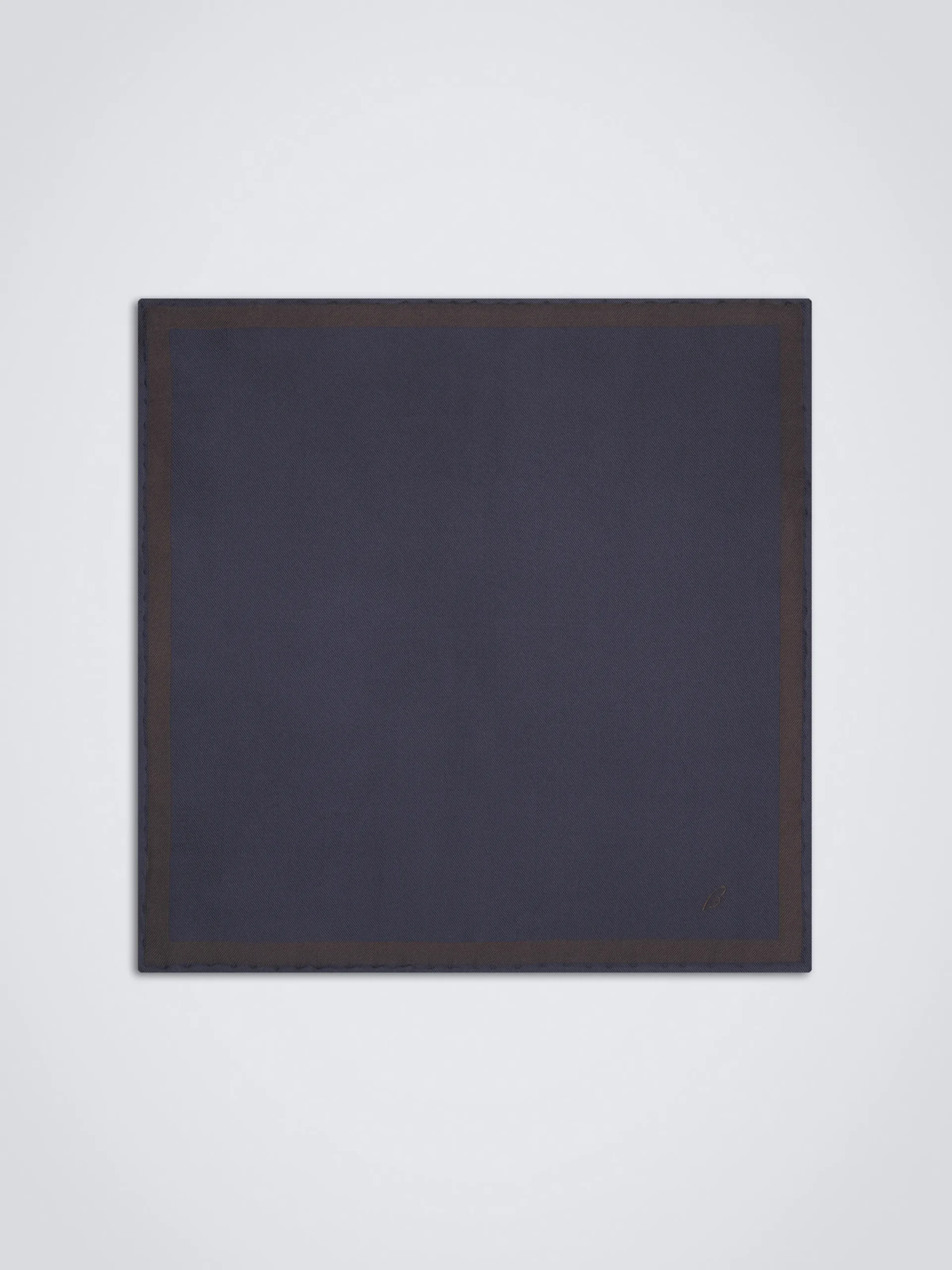 Navy blue and dark brown silk pocket square. This ultra-versatile piece is perfect to add an elegant touch to your formal jacket.