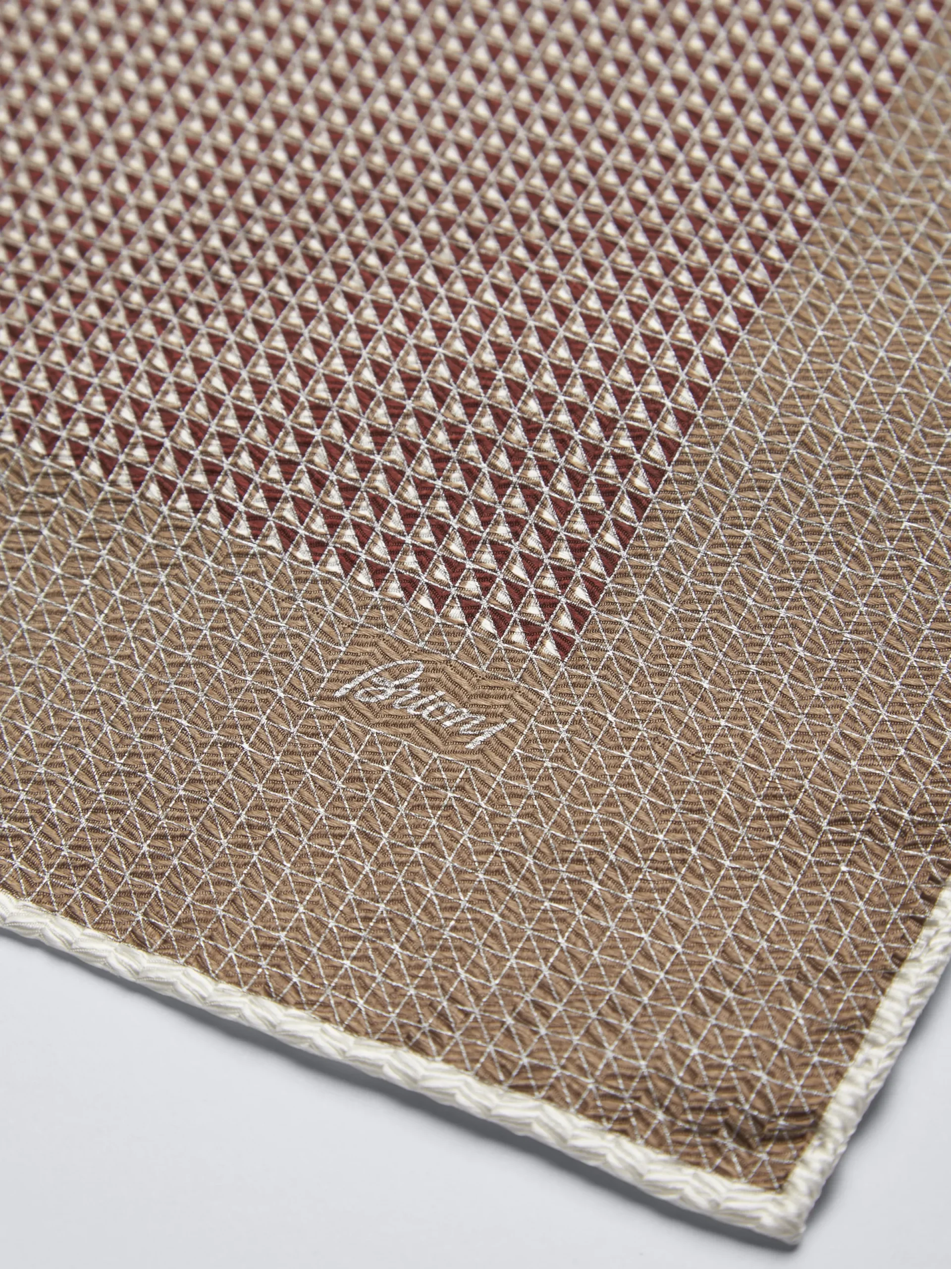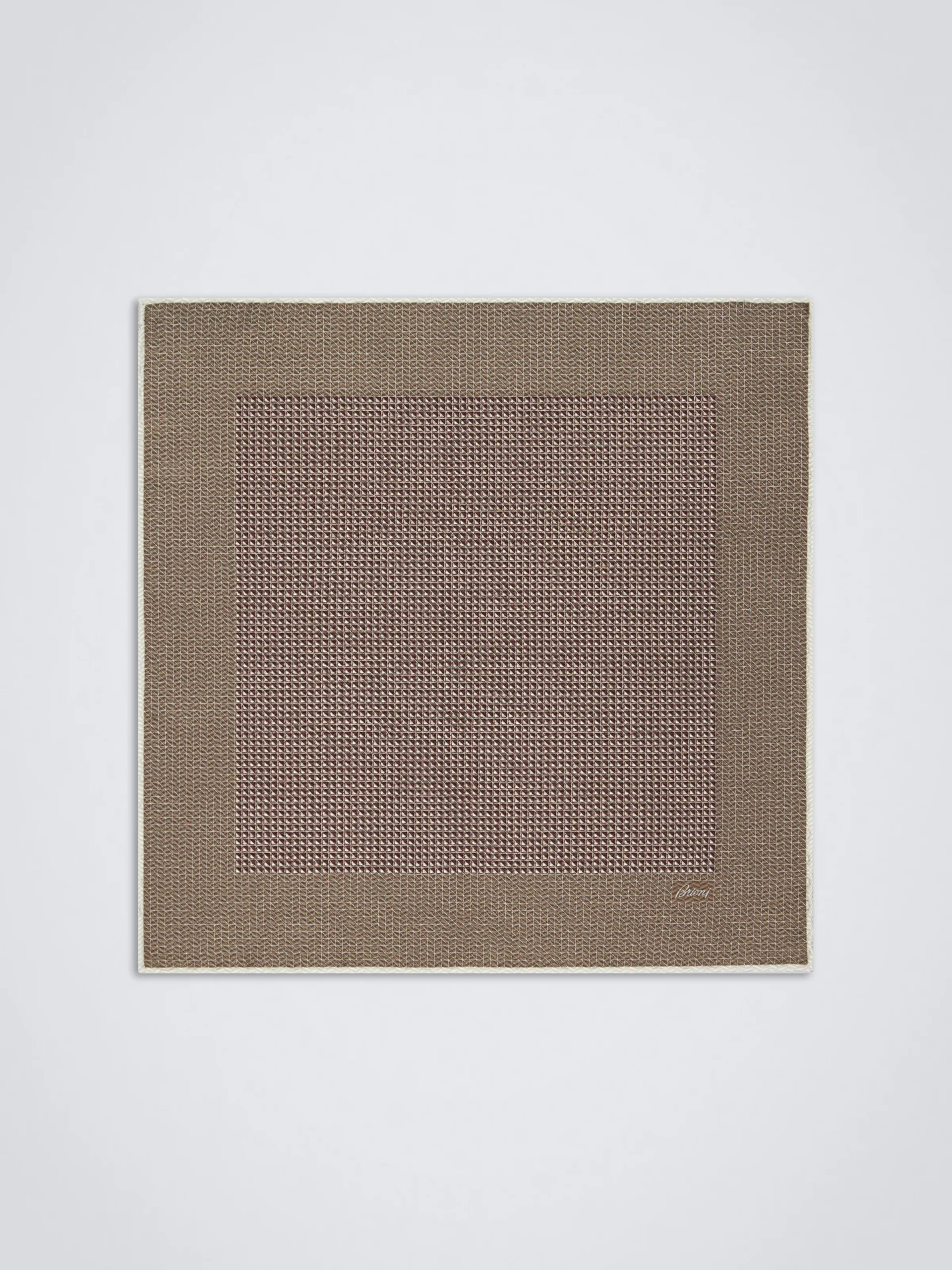 Silk bordeaux and light brown pocket square featuring micro motif all over. This extremely elegant and refined piece is …