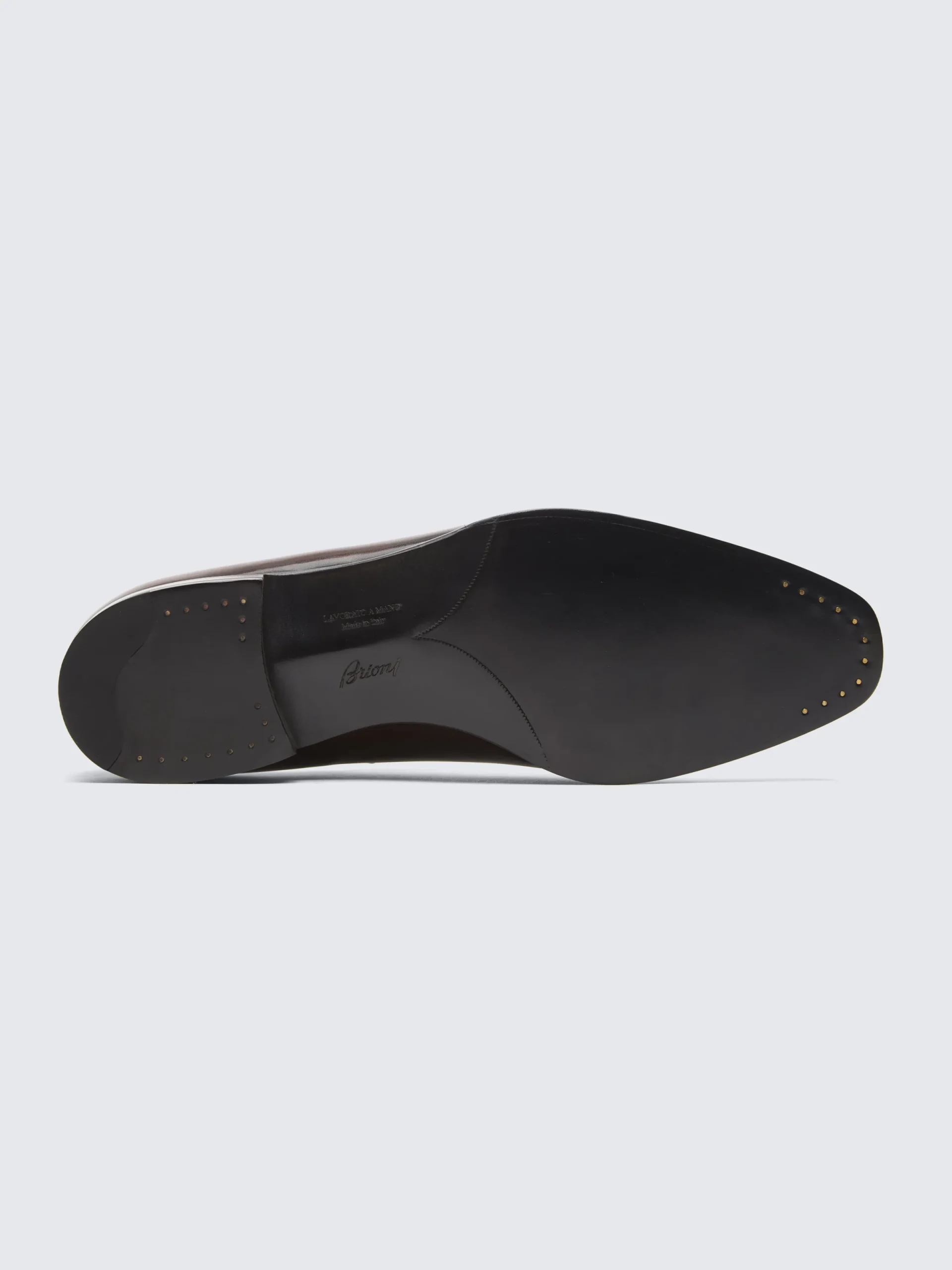 “,”features”:”Blake constructionnsole: 8mm, Heel: 30mmnHand tinted LeathernGoat lining with embossed labelnExclusive Brioni branding on the heel