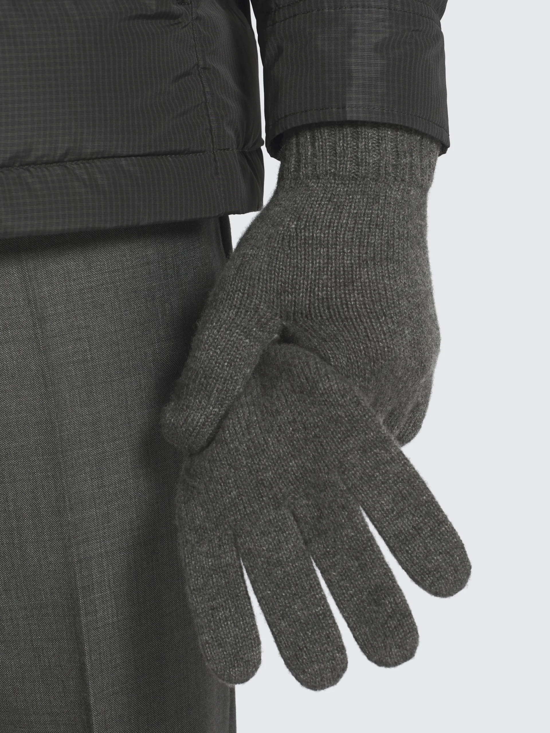 Grey cashmere gloves. Featuring a « B » logo nappa leather detail on the ribbed wrists. This timeless and soft accessory is the final classic touch to a wide array of outfits.