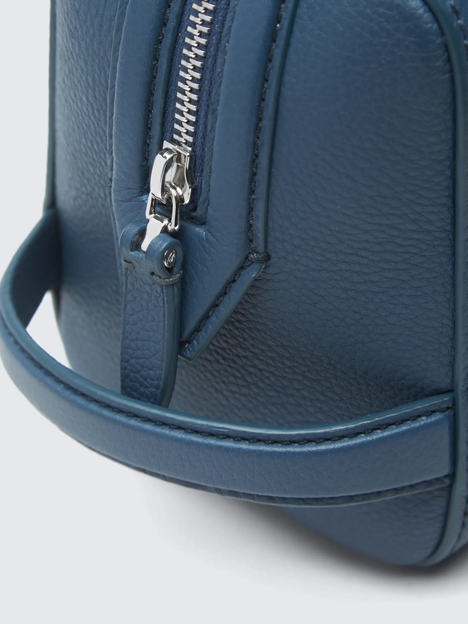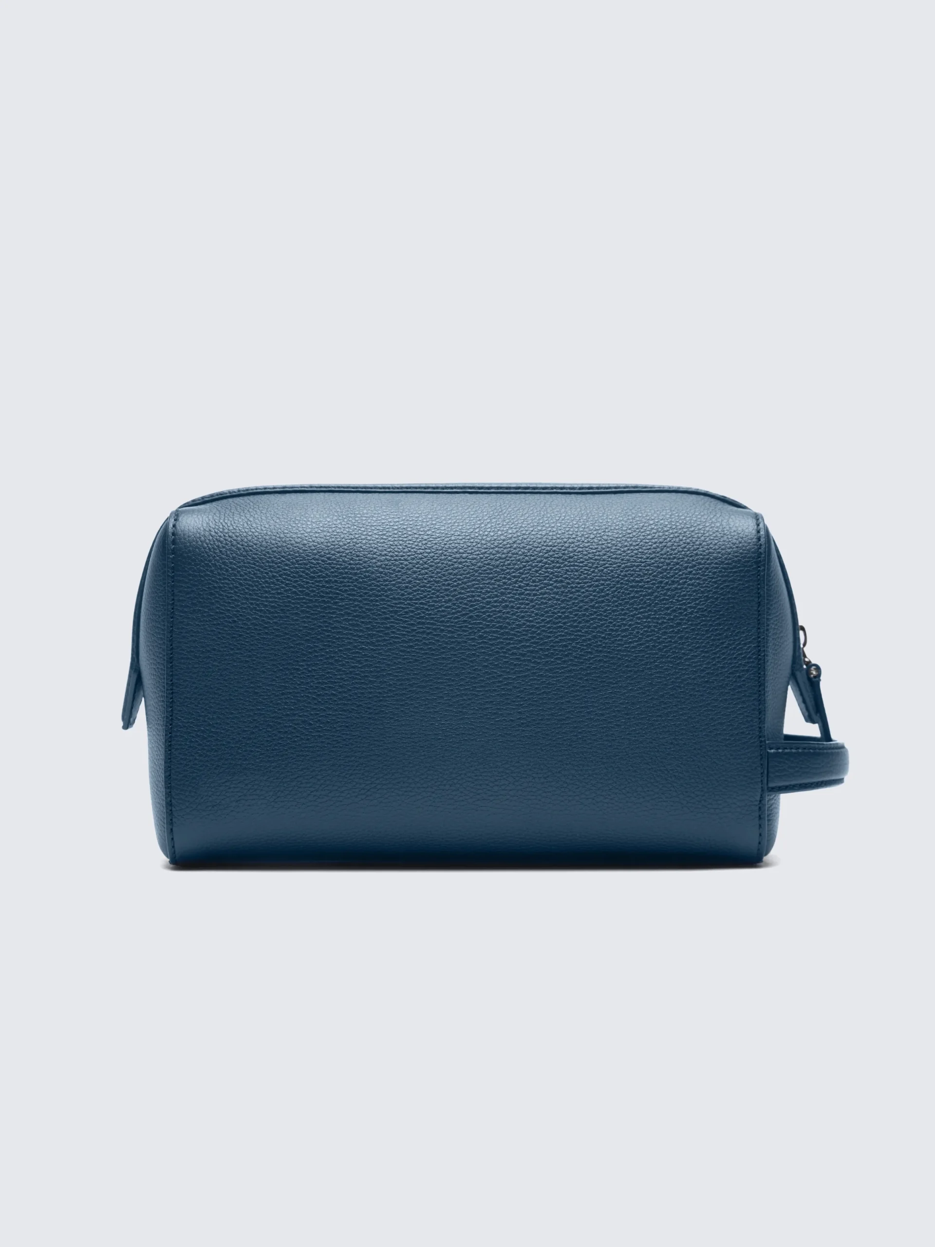 Sapphire blue grained leather beauty case, crafted from the finest calfskin leather with a grained effect. Featuring a zipped top fastening, a logo-engraved hammered metal placket and a small practical handle. A sophisticated and light accessory for everyday use or for travel. This piece is scratch-resistant, the treatment of this exceptional leather ensures that it ages beautifully over time.