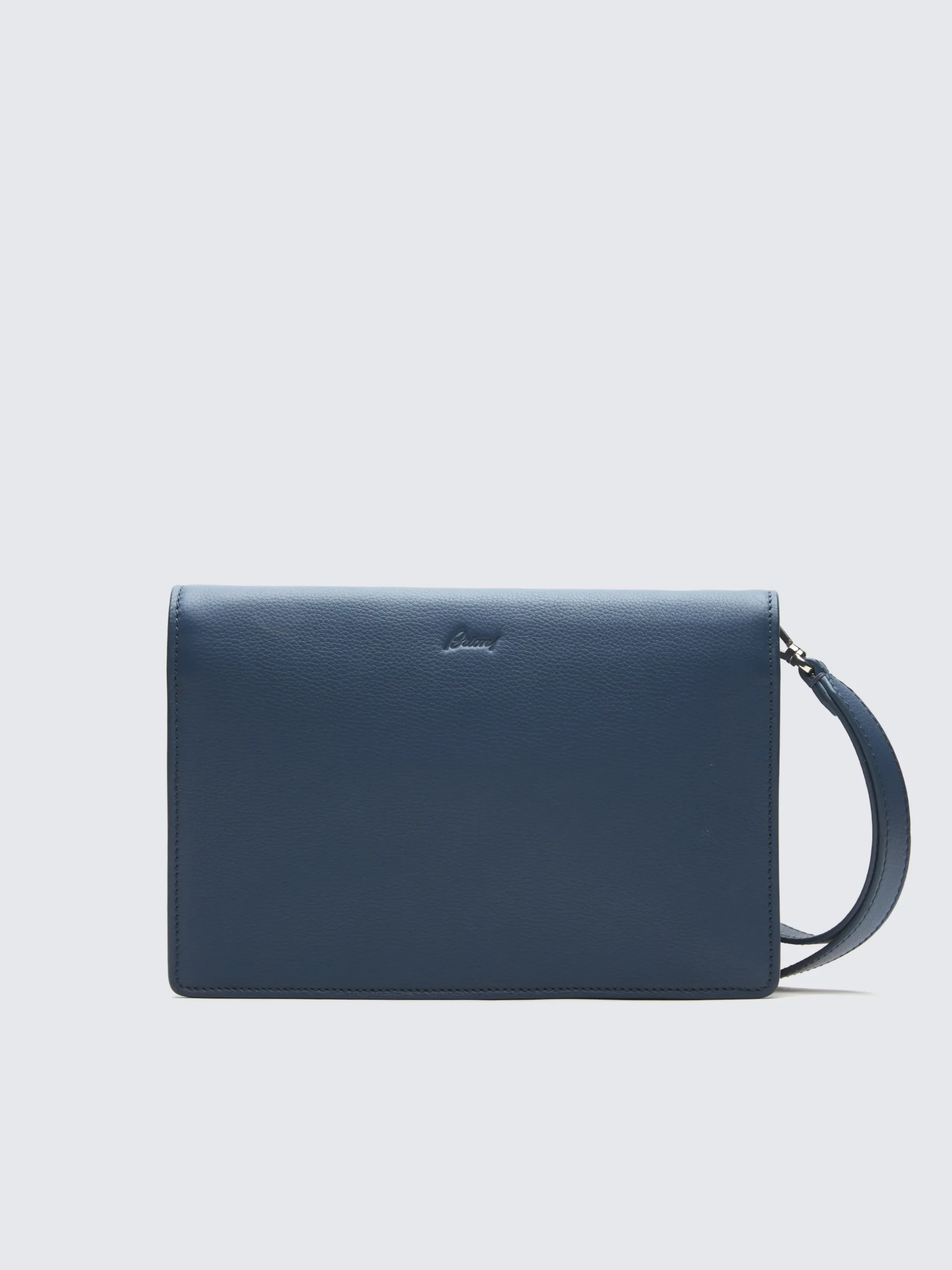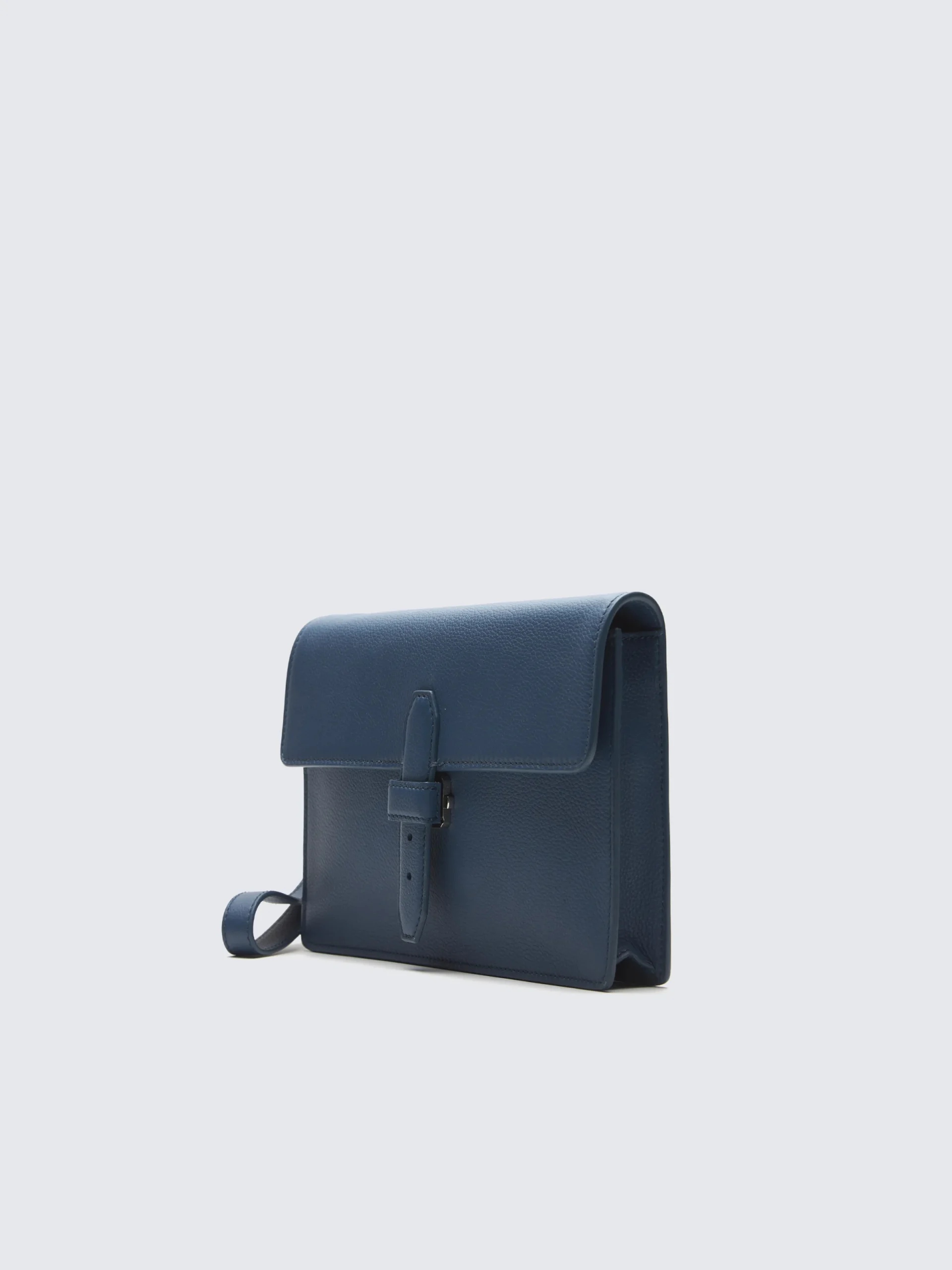 This light accessory is exceptionally thin and very practical on-the-go as a compact holdall for phone, keys, stationary… It easily fits into your luggage, thanks to the flexible and soft leather. A deliberately pure but functional aesthetic offering an extra clever way to hold the pouch from the back, with one hand. Its grained leather is scratch-resistant and ages beautifully over time.