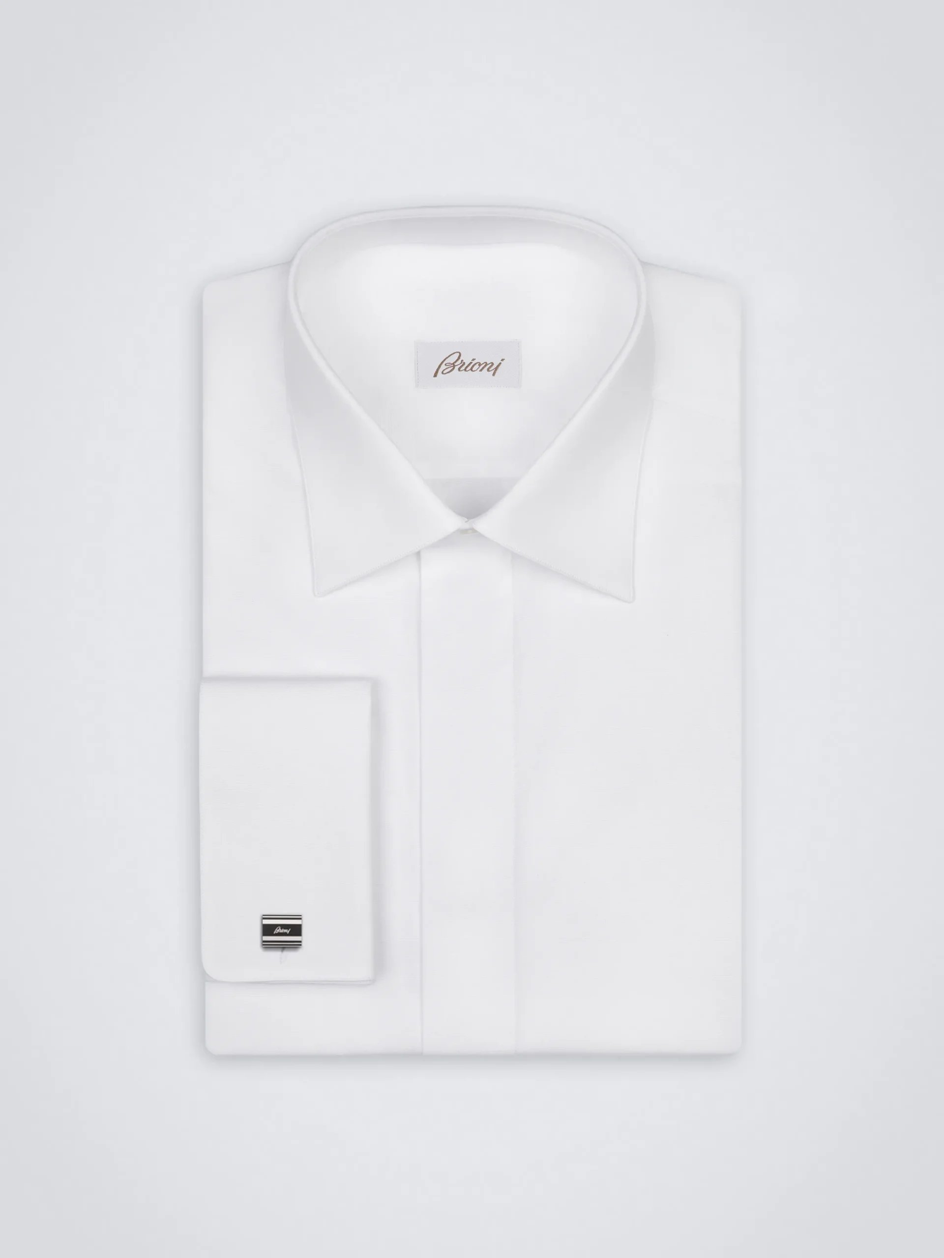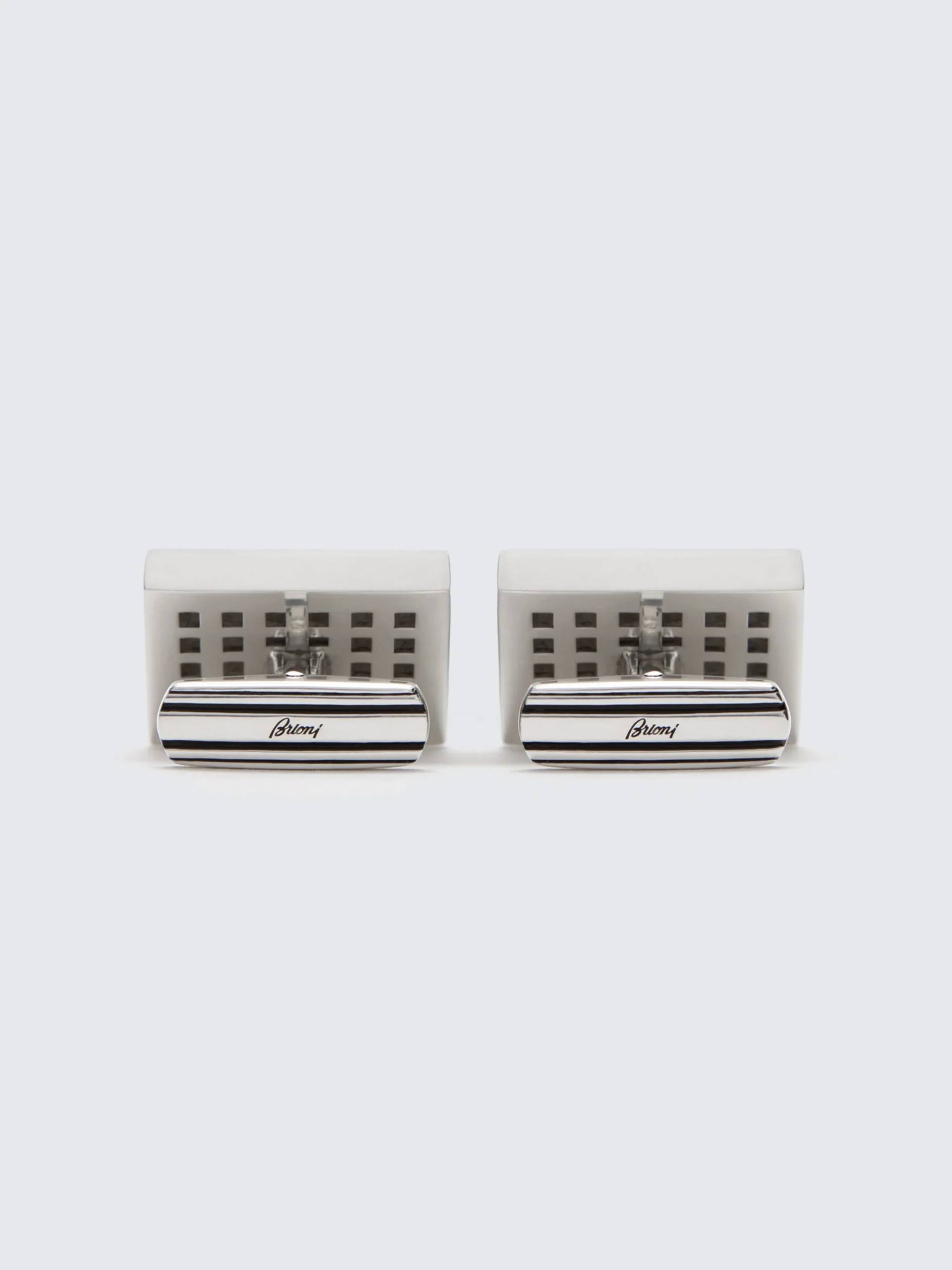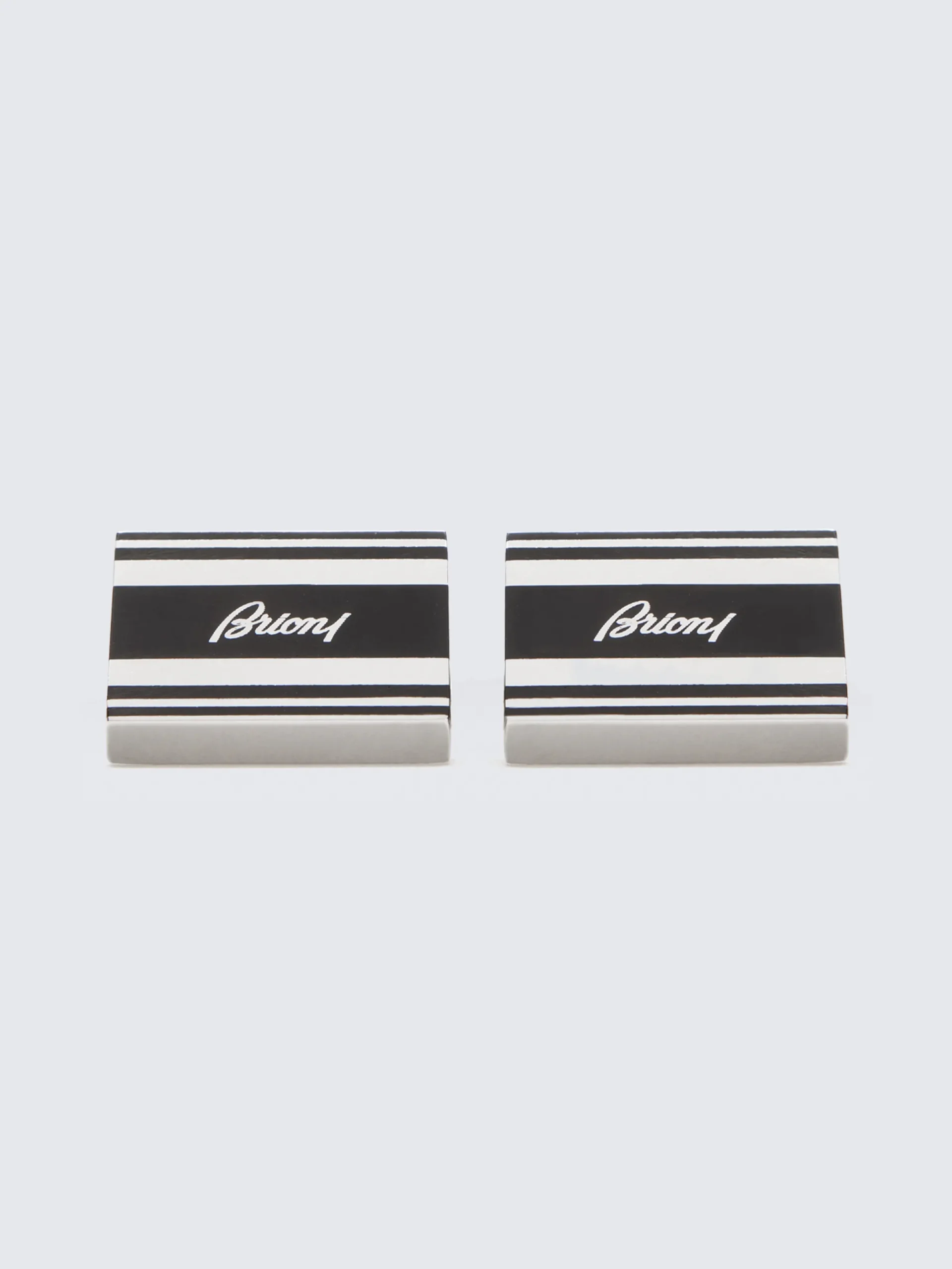 Hand painted rectangular cufflinks in 925 silver with black enamel face and Brioni logo detail. These precious accessories are the final touch to your formal and evening outfits offering a unique and iconic Brioni look.