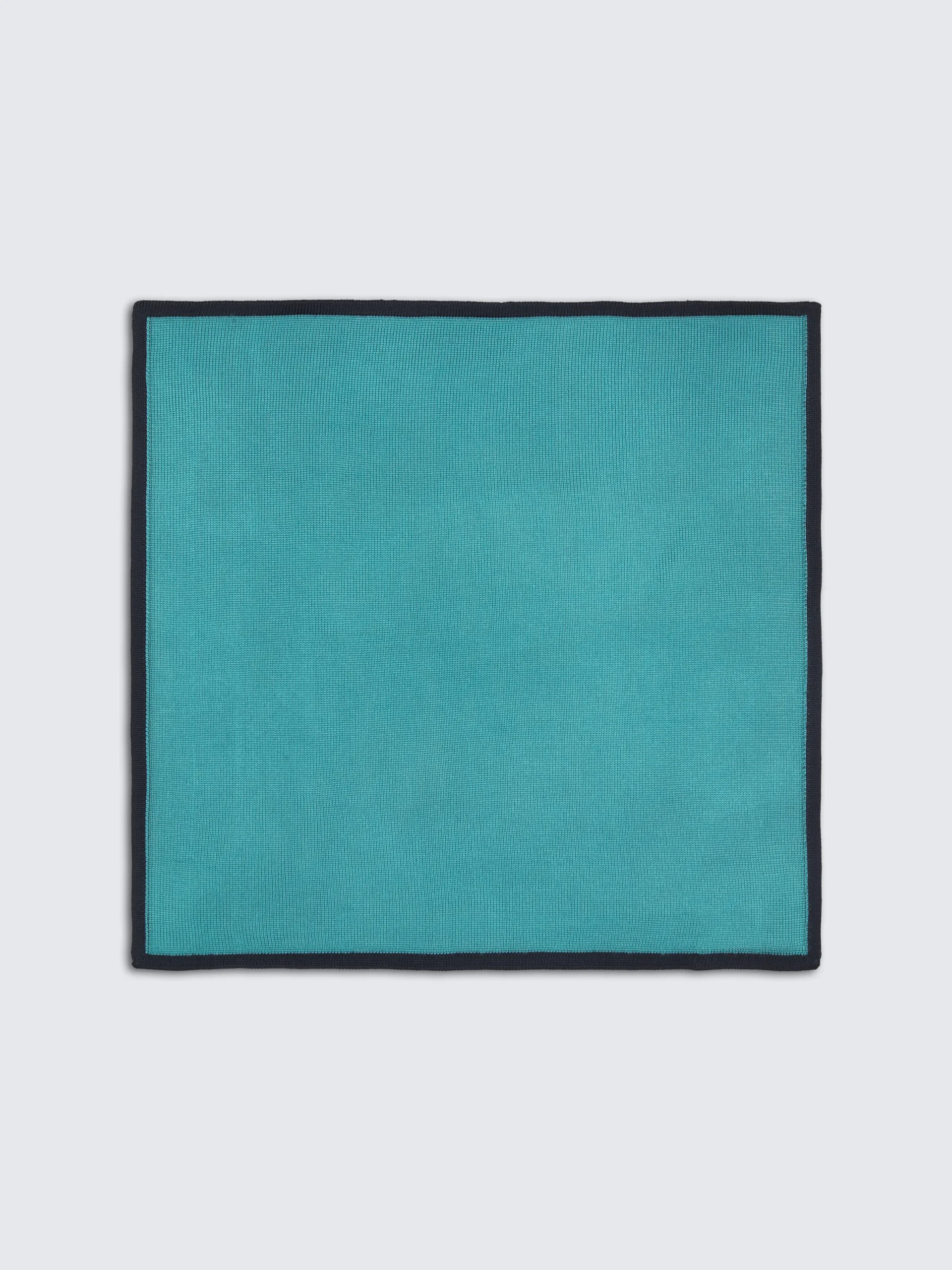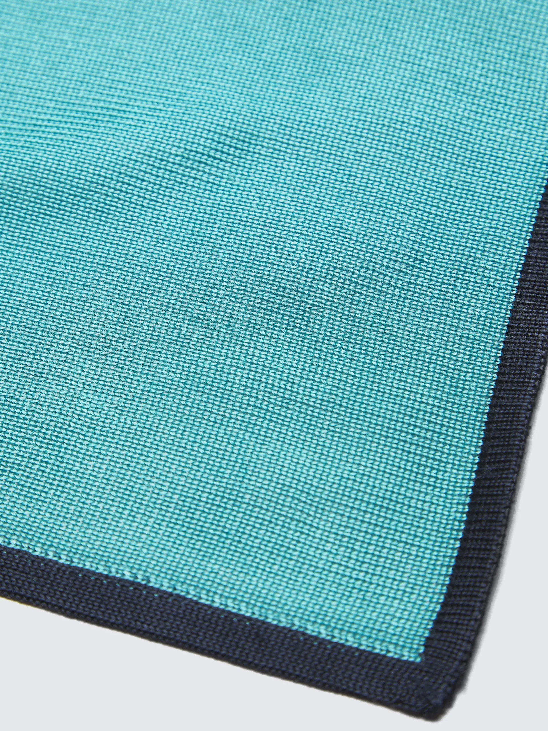 Turquoise and navy blue silk pocket square. Featuring a « B » logo embroidery detail, this refined piece is handcrafted in Italy and will add a sophisticated touch to your jackets.