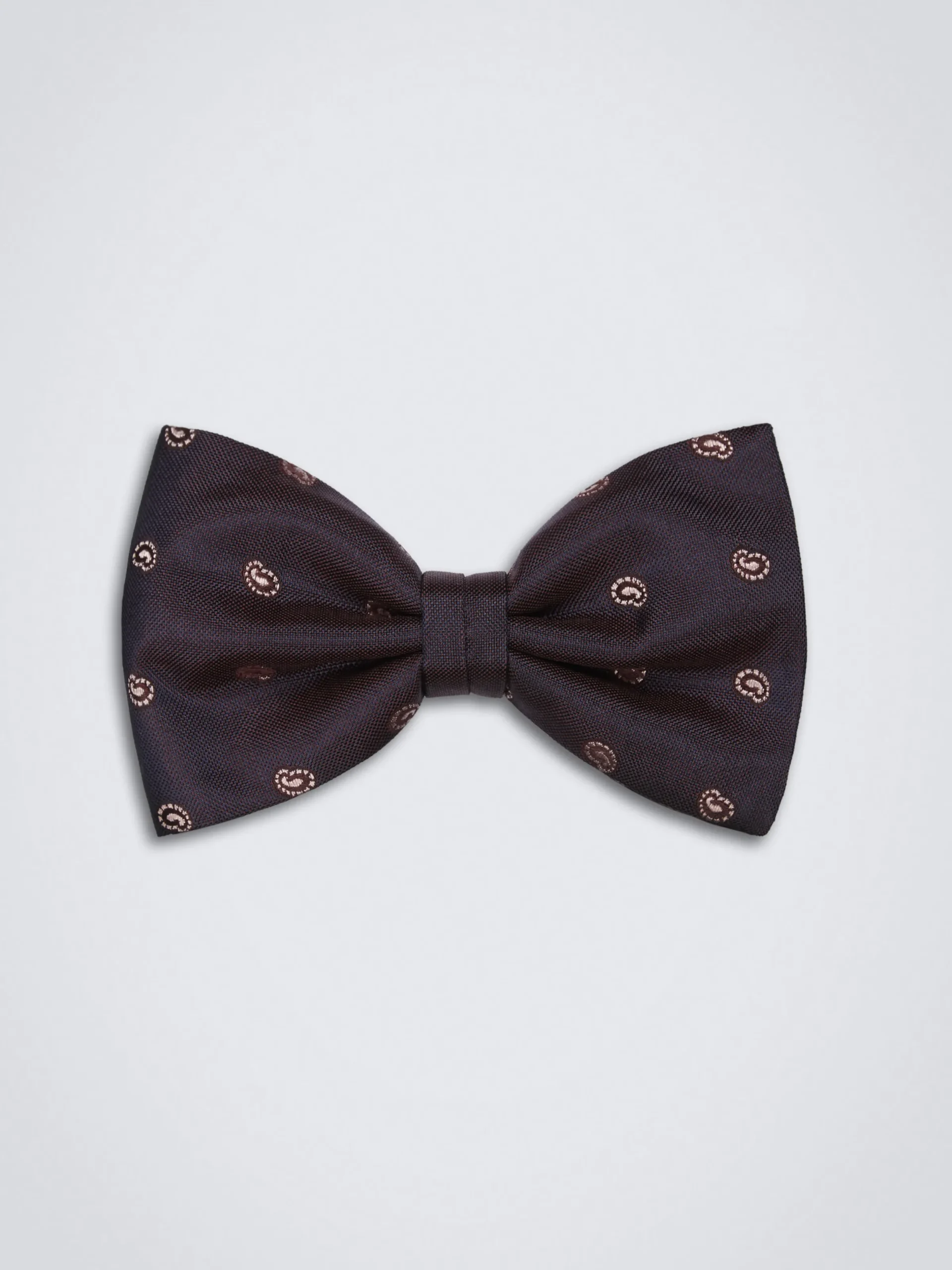 100% purple silk bow tie with pink paisley motif, handmade in Italy. A stylish and innovative design that will allow you to compliment this piece with different colours and styles of jacket.