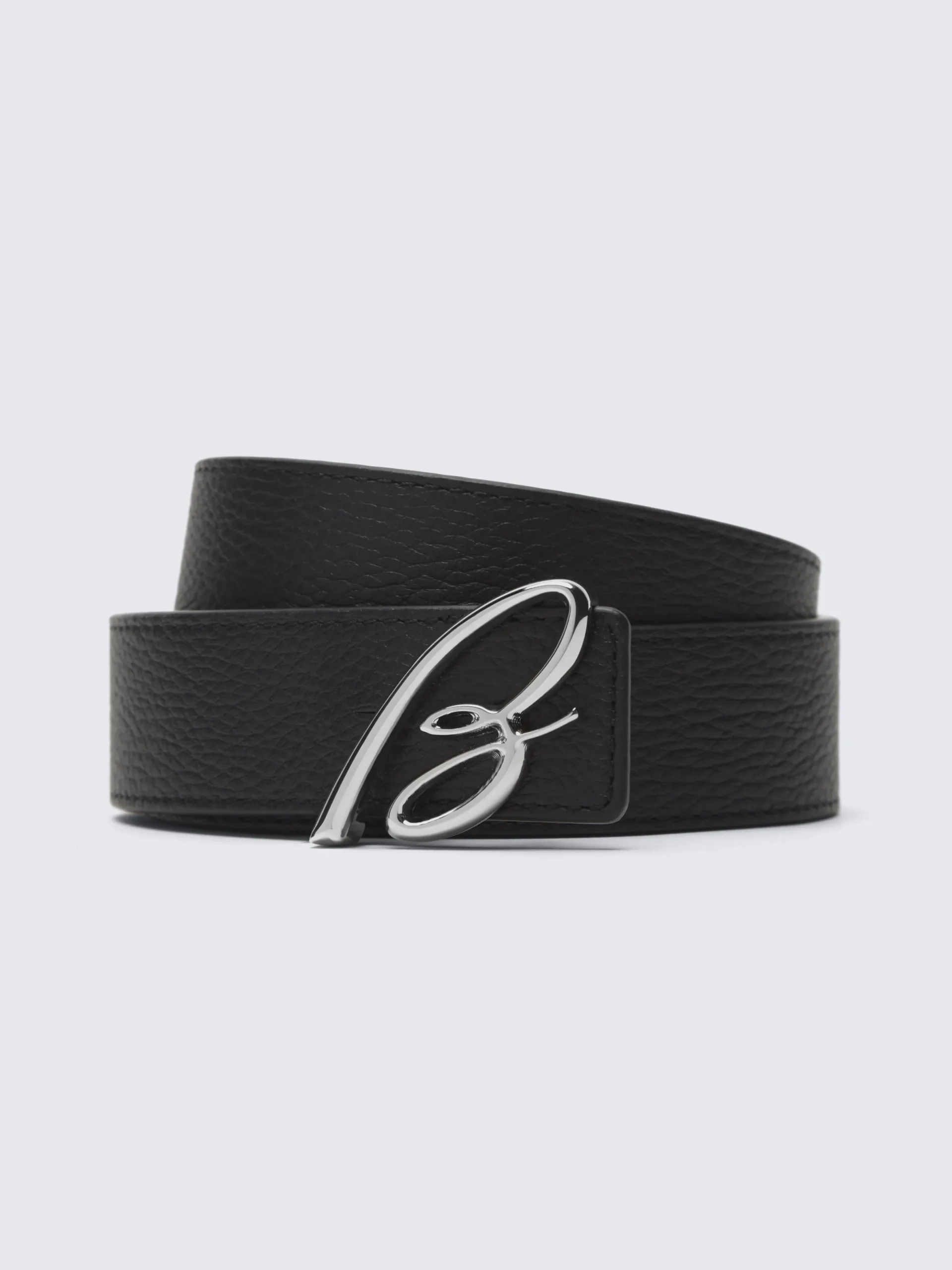 Black and taupe calfskin reversible belt. Featuring a bevelled shape end and shiny palladium « B » logo buckle. This refined accessory is the excellent final touch to a large variety of attires.