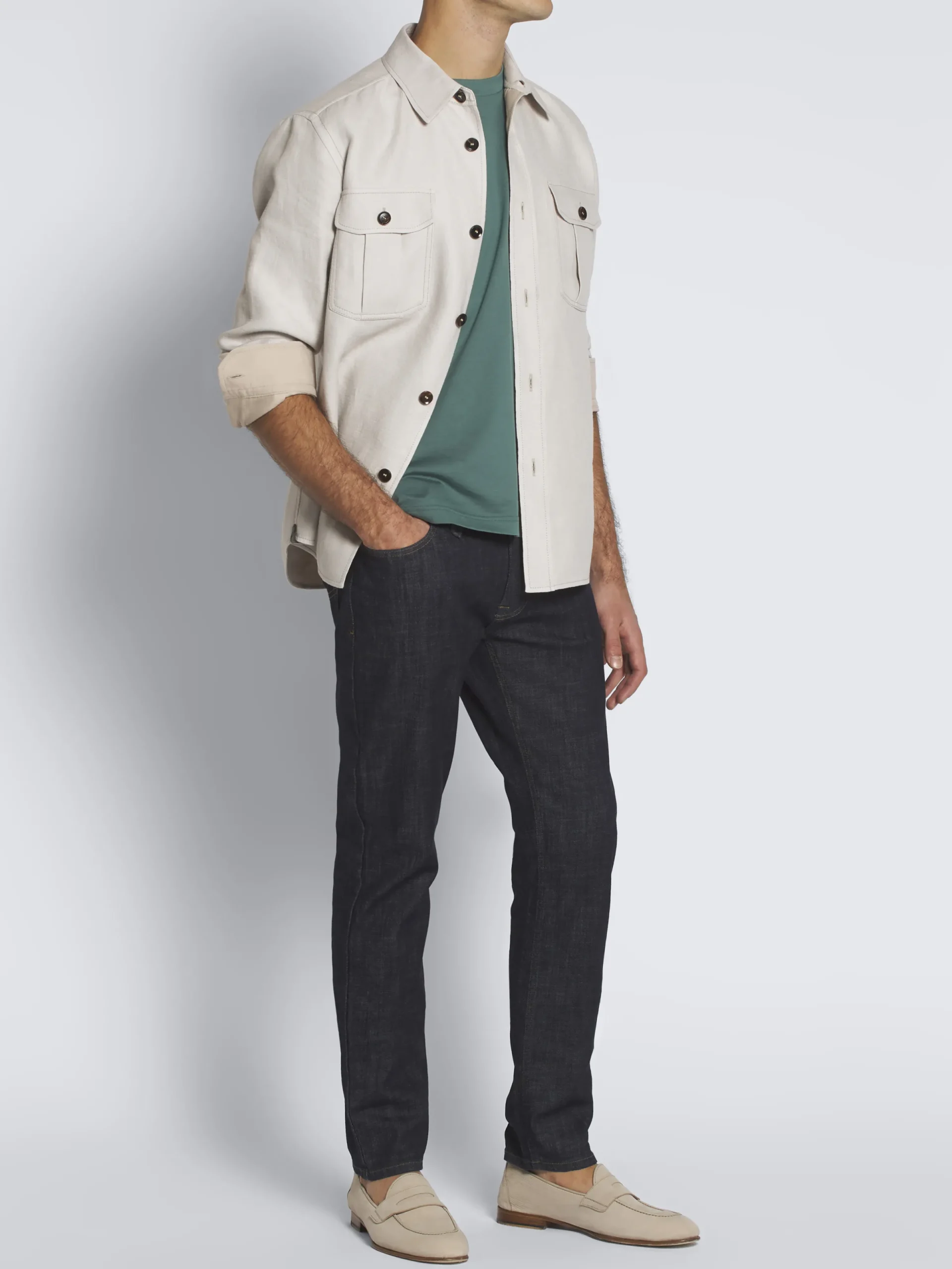 Teal green gassed organic cotton T-shirt. Featuring a regular fit, leather bevelled hem gussets with « B » logo and inside piping on the knitted collar. Timeless and effortles with a high quality finishing, it will refine any leisure look.nThis garment contains GOTS certified cotton. The Global Organic Textile Standard (GOTS) is a voluntary standard obtained by verification through independent third-parties. Practices include requirements on environmental management and wastewater; protection of health, safety and rights of employees; avoidance of hazardous substances.