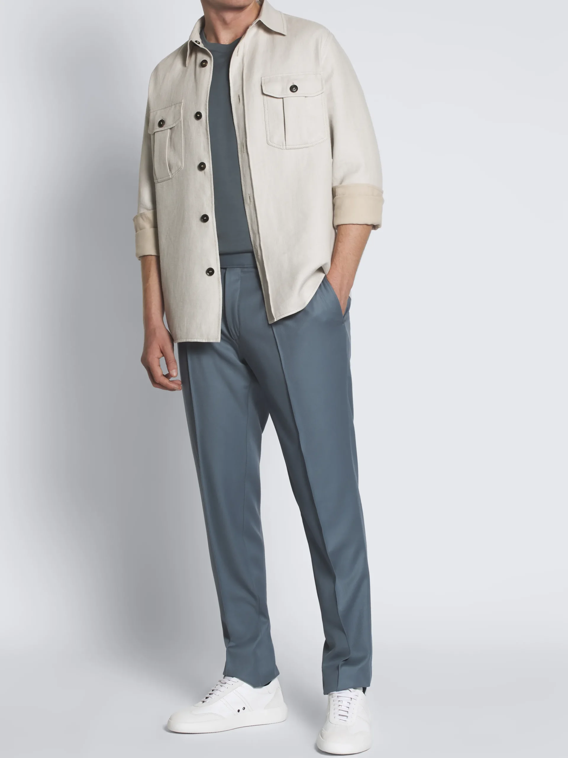 Steel blue Sea Island cotton T-shirt. Featuring a regular fit and leather bevelled gusset with « B » logo on the hem, this is the ideal piece for layering, adding effortless flair to relaxed looks. Sea Island is one of the finest and most sought-after cottons in the world. Grown in limited quantities in the Caribbean, it is renowned for its long staple fibres which allow for a stronger, more resilient yarn, and result in an incredible hand feel, silky to the touch and smooth on the skin.