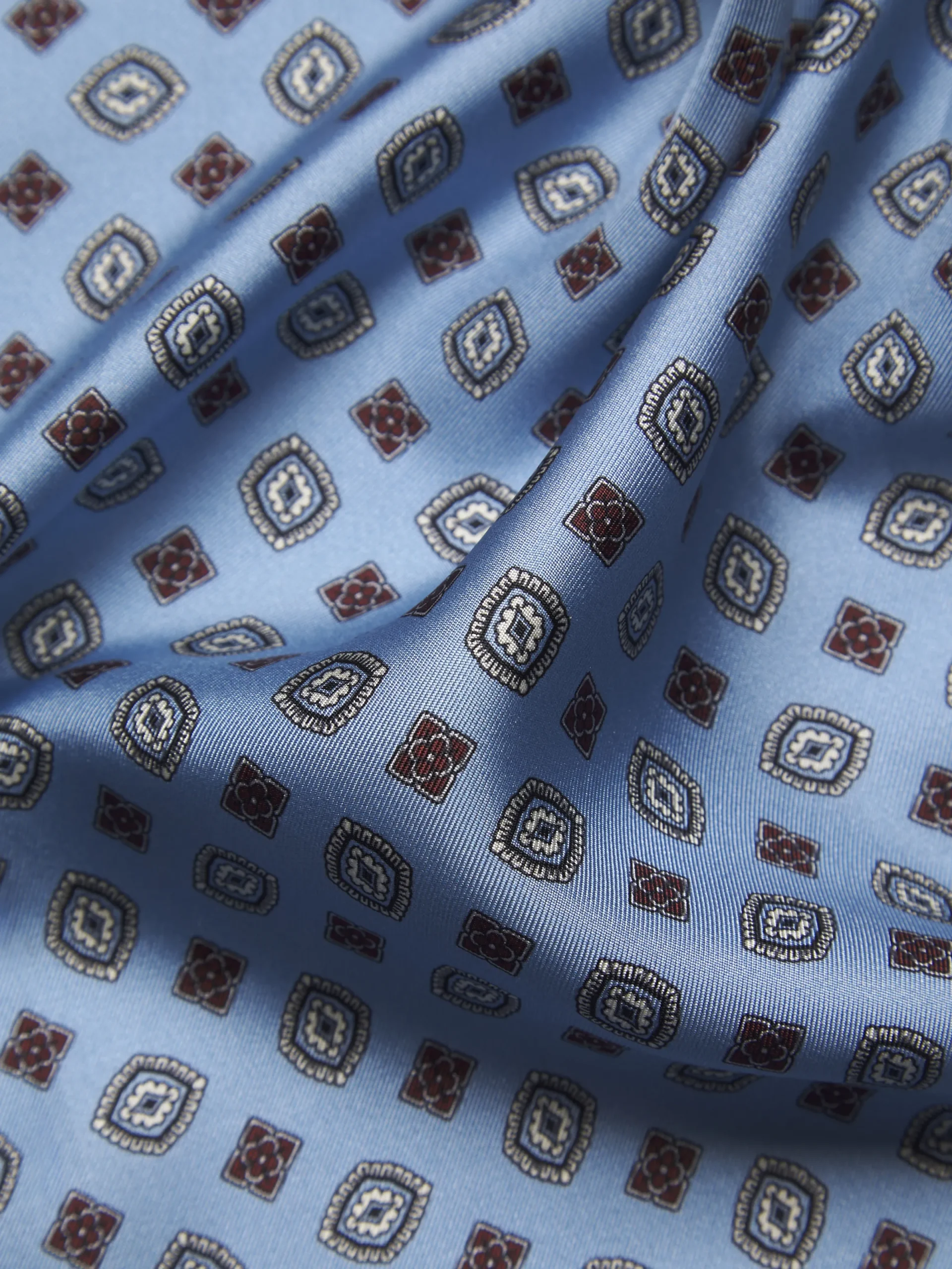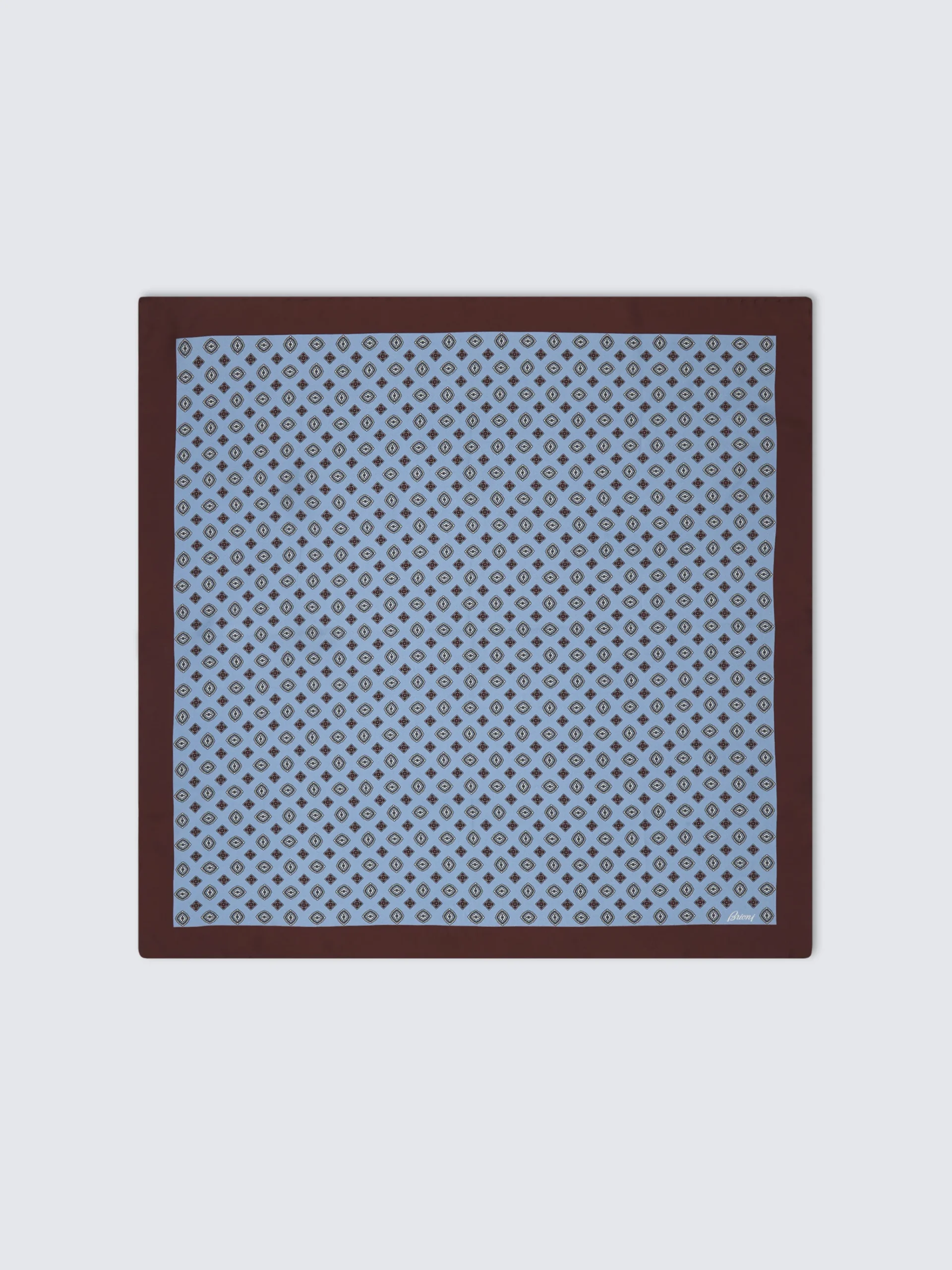 Sky blue and bordeaux micro motif silk foulard. Handmade from the finest materials, it features a Brioni logo detail. A refined accessory of timeless elegance that will add a sophisticated flair to any look with an array of styling options.