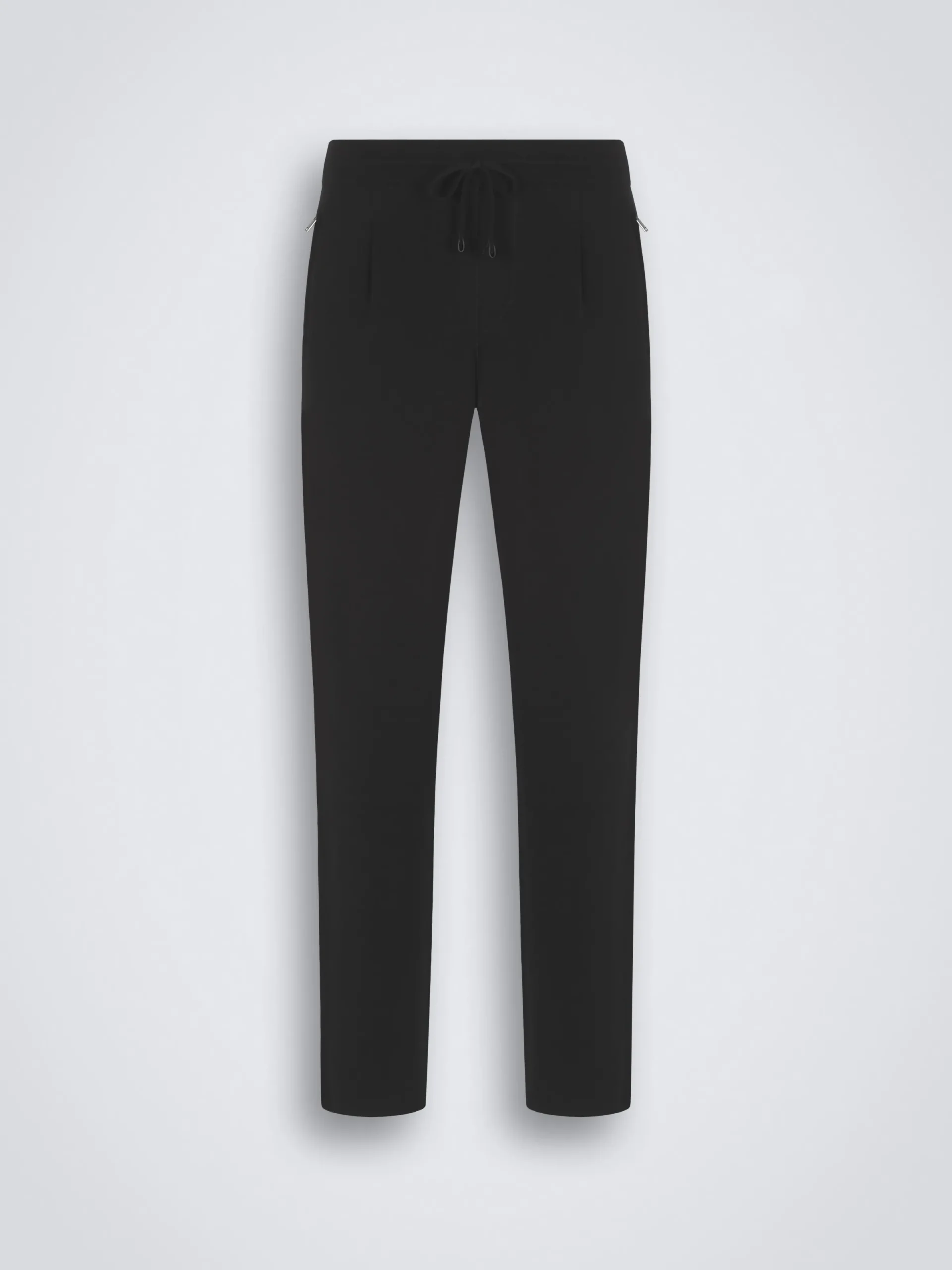 Black knitted leisure trousers in a soft cashmere and silk blend on the outside and 100% cotton on the inside. Leather cord adjuster and two jet pockets at front for added practicality. Exceptionally comfortable, these trousers are the perfect addition to your sportswear wardrobe, to feel at ease on your days off.