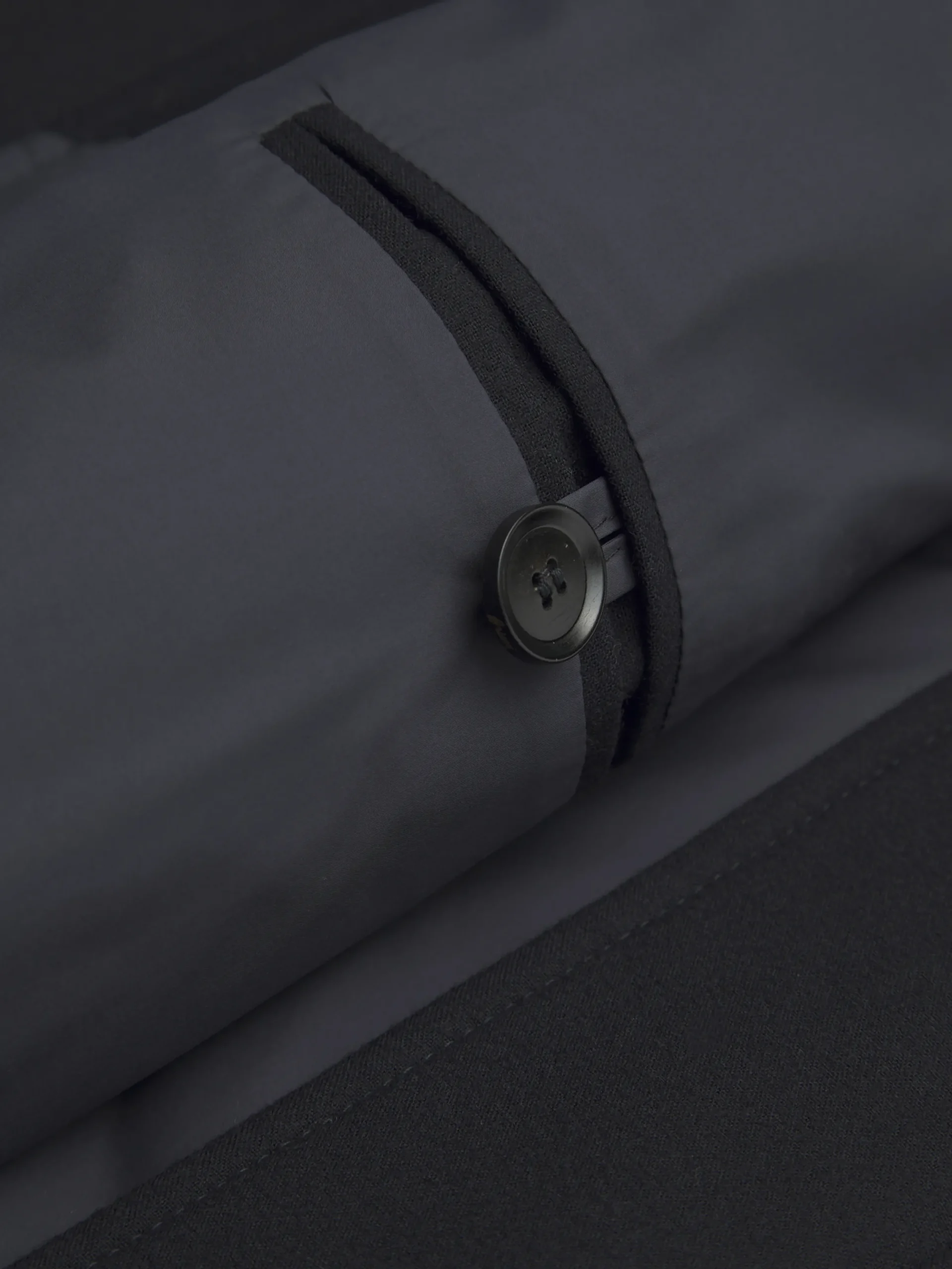 “,”features”:”Standing collarnDual zip with metal puller and snapsnInternal elasticated waist drawcordnOne vertical chest pocket with leather tab detailnTwo double-entry front pocketsnOne internal pocket with button closurenOne internal zip pocketnWater repellent and wind proofnLining: wool and cashmere jerseynFilling: 40gr OvattanPadding: 40gr recycled cashmerenLength: 80 cm measured on a size 50