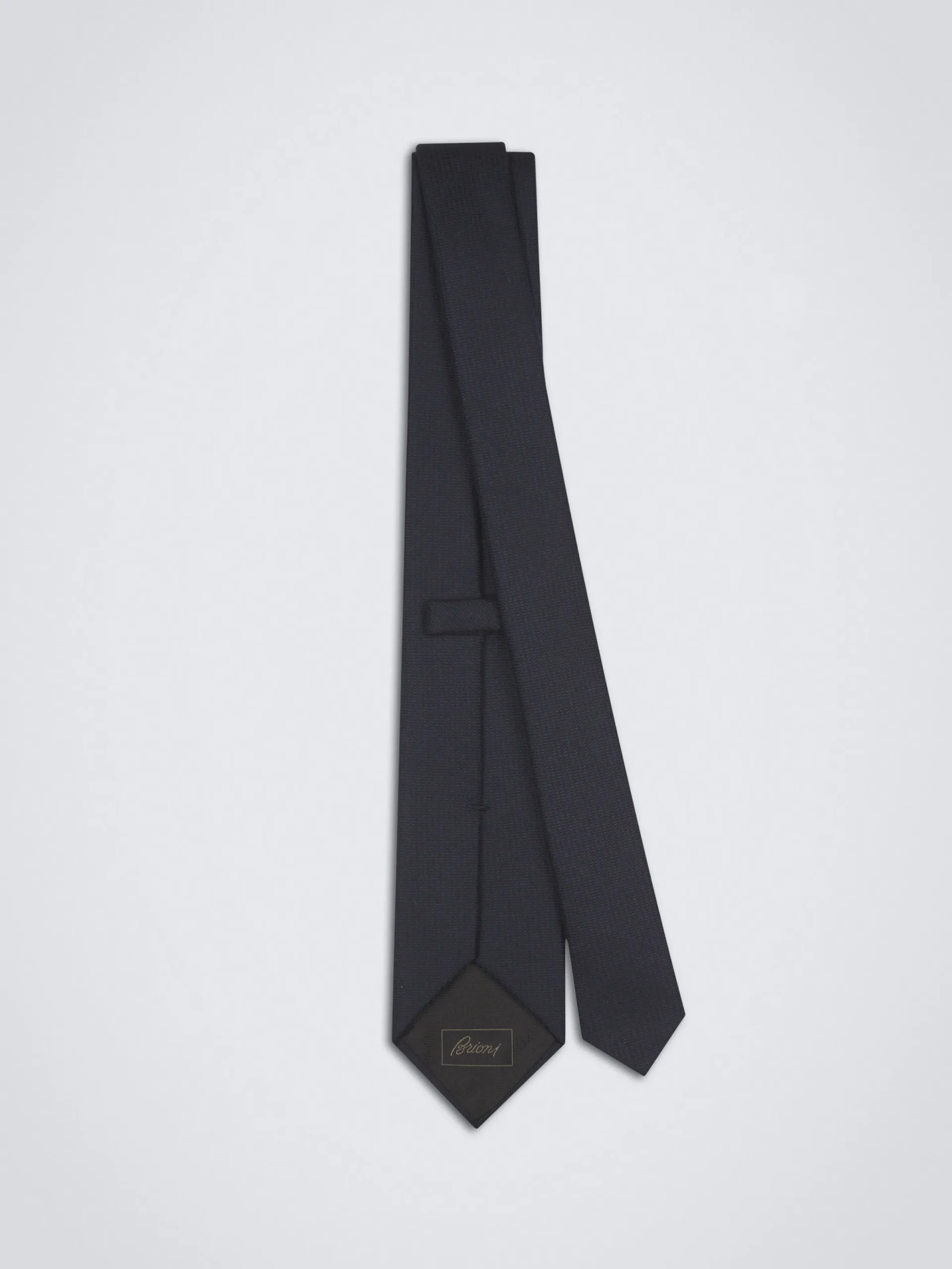 Navy blue cashmere blend tie. Brioni ties are the epitome of elegance, handmade from the finest materials. This piece in perfect to pair with a white crisp shirt and a formal jacket for a refined, chic and modern look.