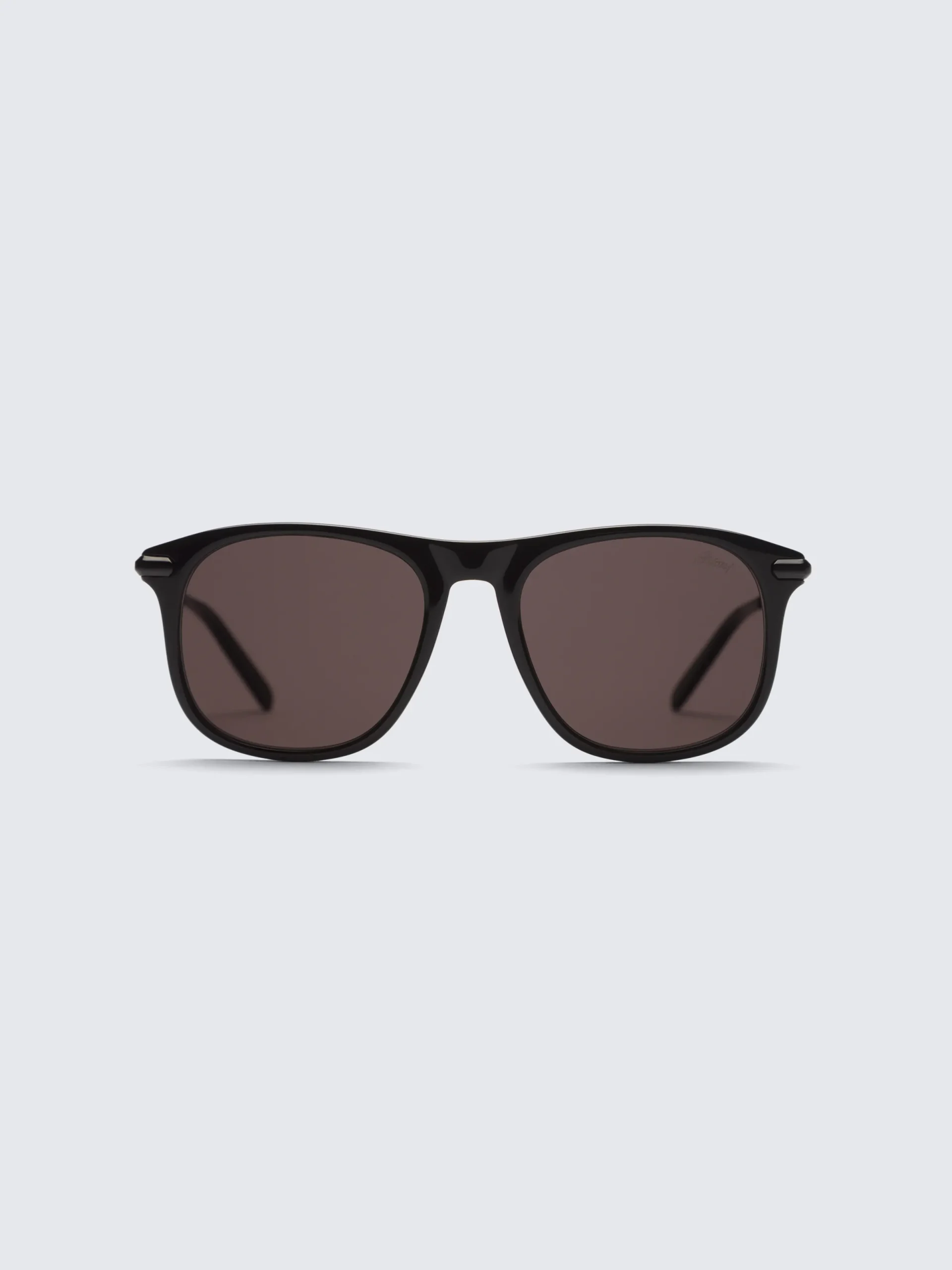 Inspired by traditional aviator silhouette, these black sunglasses feature a single bridge and black lenses. The acetate frame combined with the semi-matt effect in the same colour on the metal temples, gives a modern twist to this model. Crafted in Italy with Brioni logo on the lenses and temples, they are a simple way to top off your look.