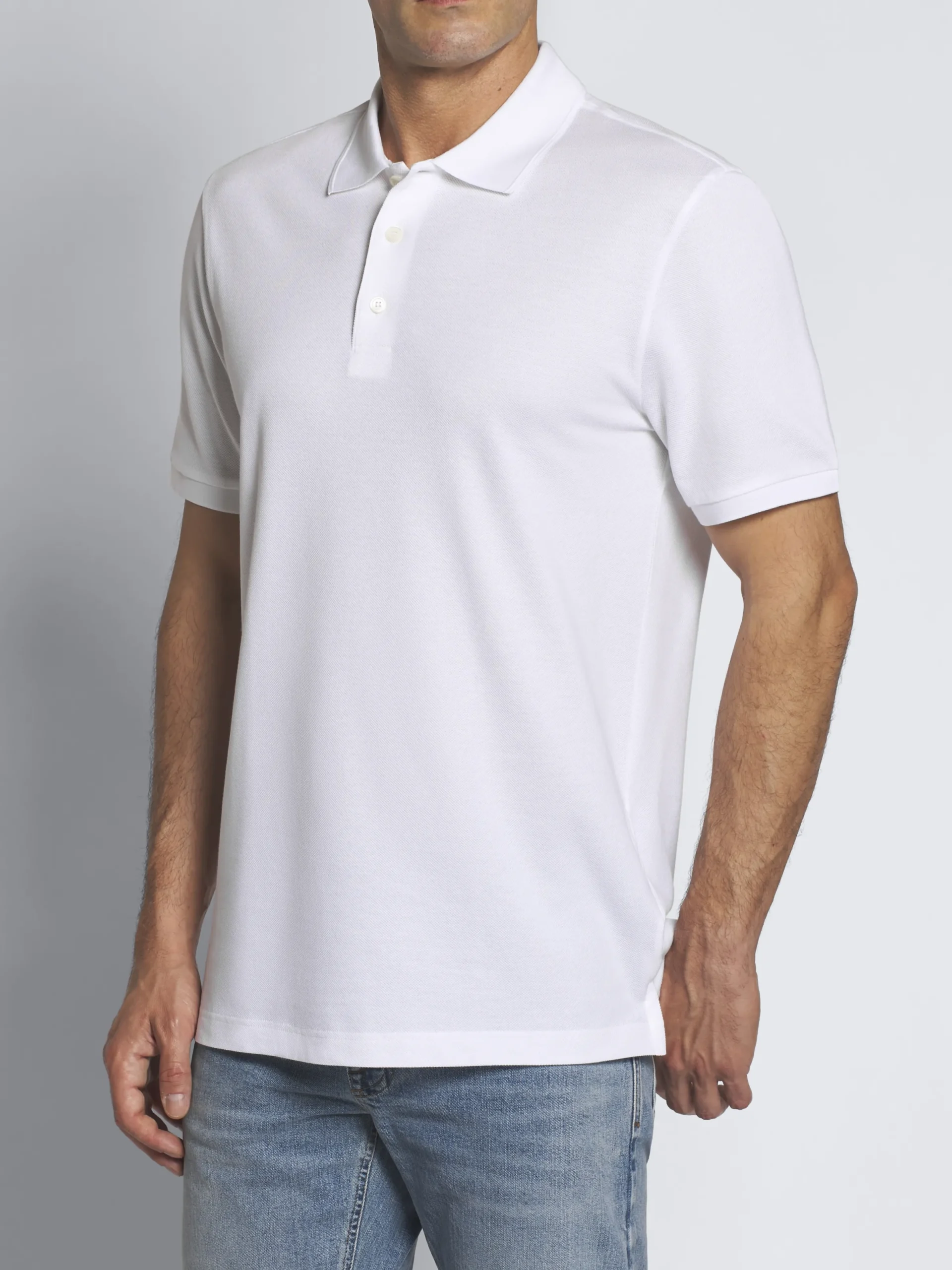 Slim fit short-sleeved white organic cotton piqué polo shirt with knitted collar and cuffs, mother of pearl buttons and tone on tone Brioni embroidered logo on the central back. The perfect piece for a relaxed and contemporary look. This garment contains GOTS certified cotton. The Global Organic Textile Standard (GOTS) is a voluntary standard obtained by verification through independent third-parties. Practices include requirements on environmental management and wastewater; protection of health, safety and rights of employees; avoidance of hazardous substances.