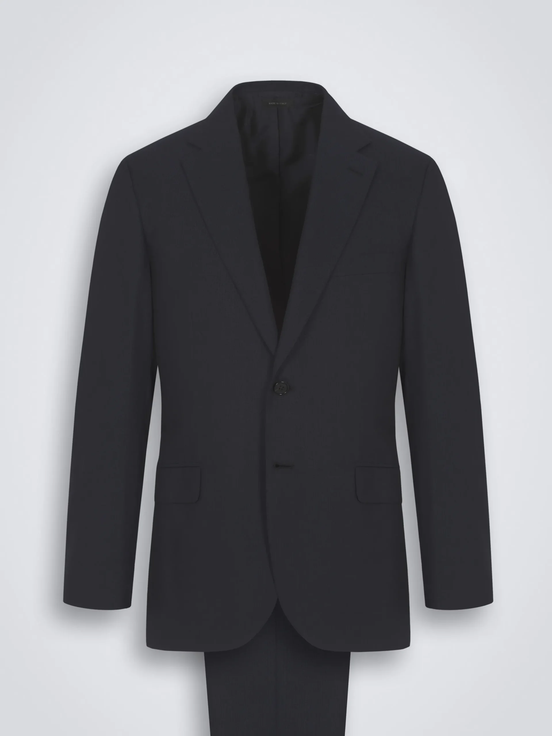 Navy blue pinstriped Super 210’s wool Brunico suit, featuring notch lapels, two buttons, flap pockets and two back vents. Since its launch in 2010, the Brunico suit has become a staple. With its classic fit and construction entirely by hand, it’s the expression of Brioni tailoring excellence.nThe Super designation reflects the remarkable thinness of the wool: the higher the Super S value, the finer the fibre and thus the softer the fabric crafted from it.