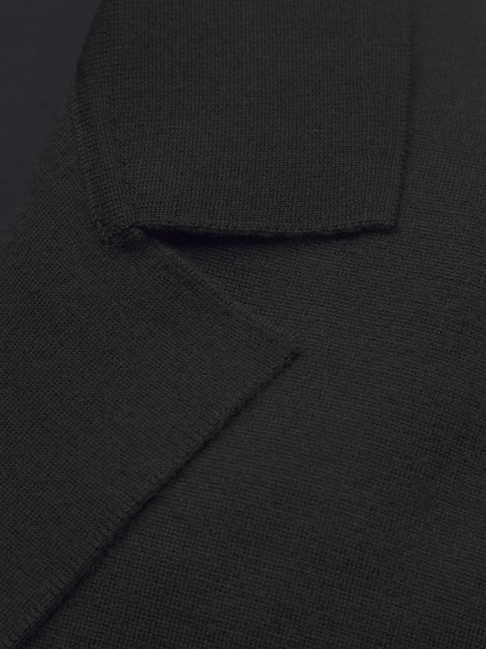 Midnight blue blazer featuring a soft lightweight blend of cashmere and silk on the outside while the cotton on the inside is unbeatable with its smoothness and breathability. Three patch pockets, two horn buttons and notch lapels.