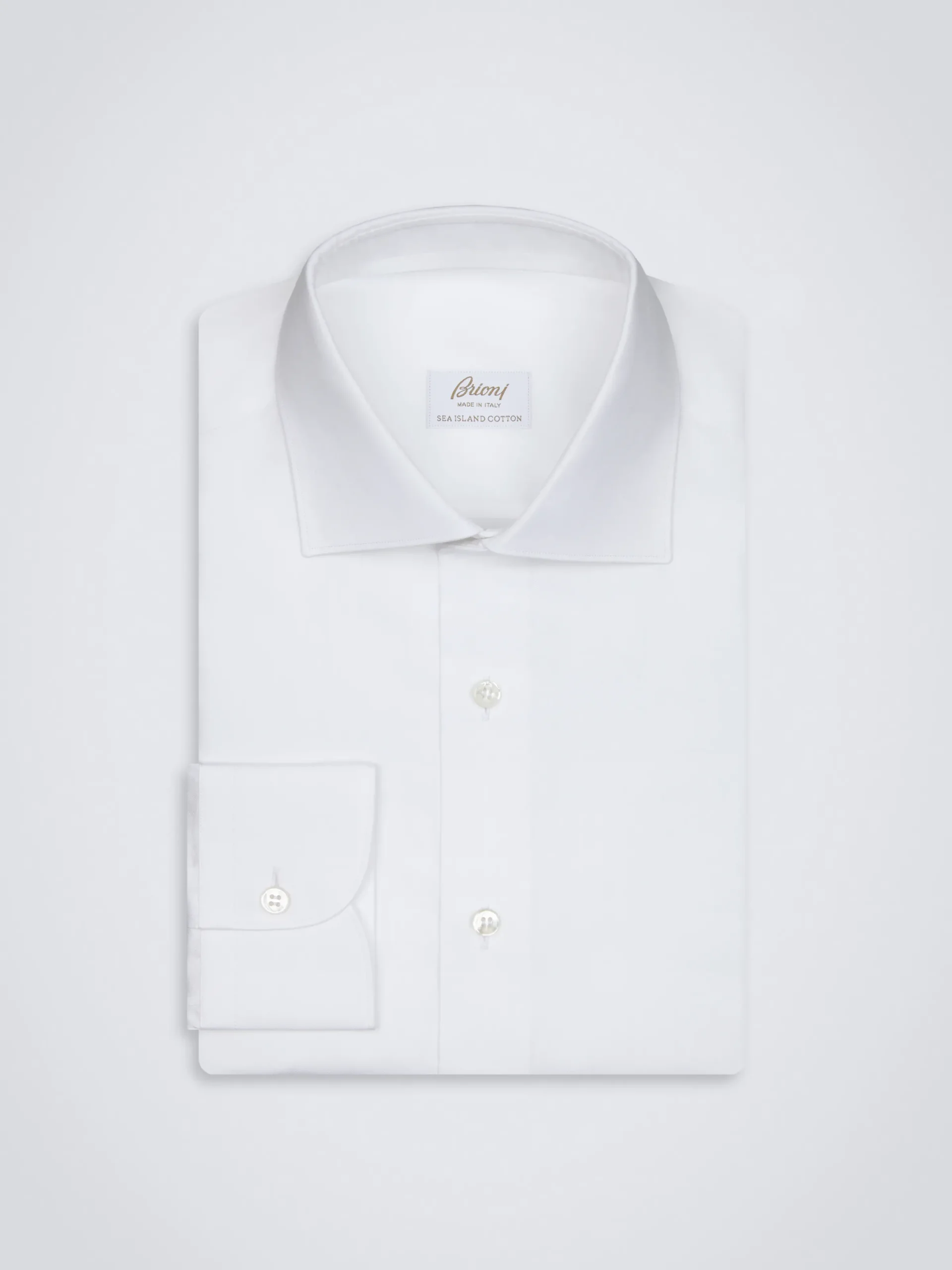 Essential white cotton formal shirt, featuring a spread collar and rounded cuffs. With its soft hand feel and regular fit, this shirt is perfect to be worn from morning to evening.nSea Island is one of the finest and most sought-after cottons in the world. Grown in limited quantities in the Caribbean, it is renowned for its long staple fibres which allow for a stronger, more resilient yarn, and result in an incredible hand feel, silky to the touch and smooth on the skin.