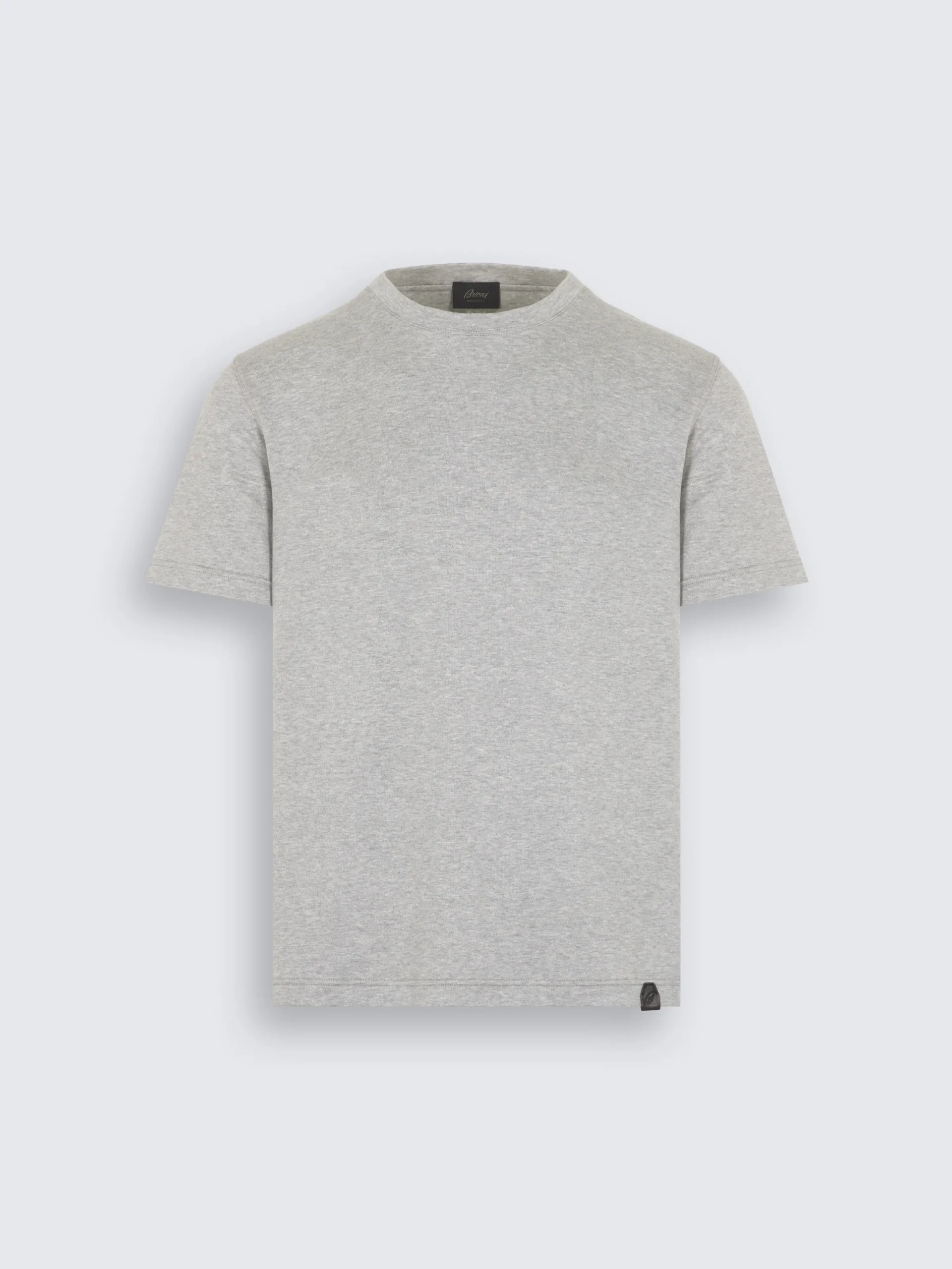 Light grey Sea Island cotton T-shirt. Featuring a regular fit and leather bevelled gusset with « B » logo on the hem, this is the ideal piece for layering, adding effortless flair to relaxed looks. Sea Island is one of the finest and most sought-after cottons in the world. Grown in limited quantities in the Caribbean, it is renowned for its long staple fibres which allow for a stronger, more resilient yarn, and result in an incredible hand feel, silky to the touch and smooth on the skin.