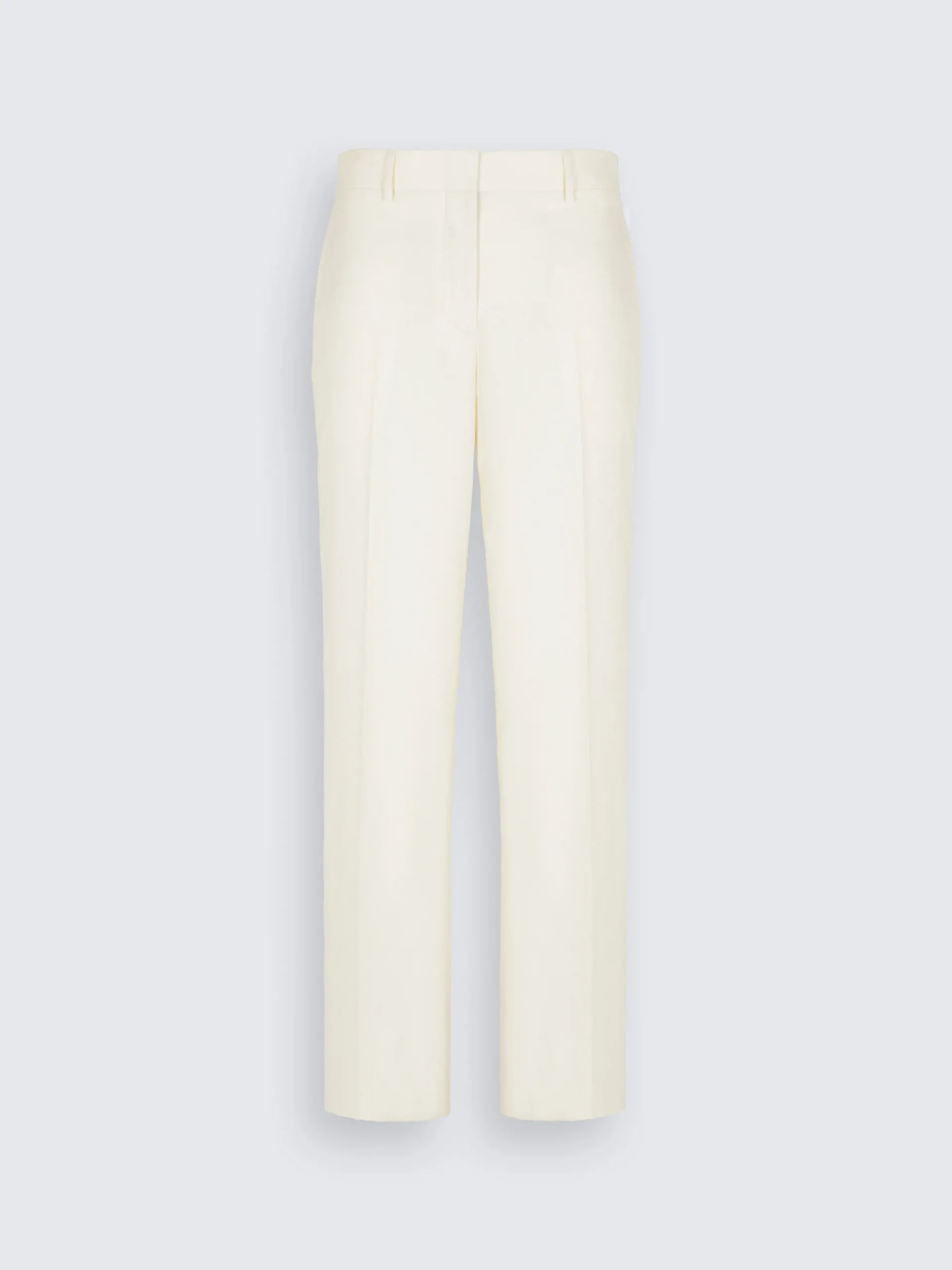 Ivory white wool, silk and linen herringbone Palinuro trousers. Featuring a zip fly and hidden button closure, two side diagonal pockets, two back welt pockets with button closure and belt loops. The clean lines give to these trousers an effortless attire that will elevate any look.